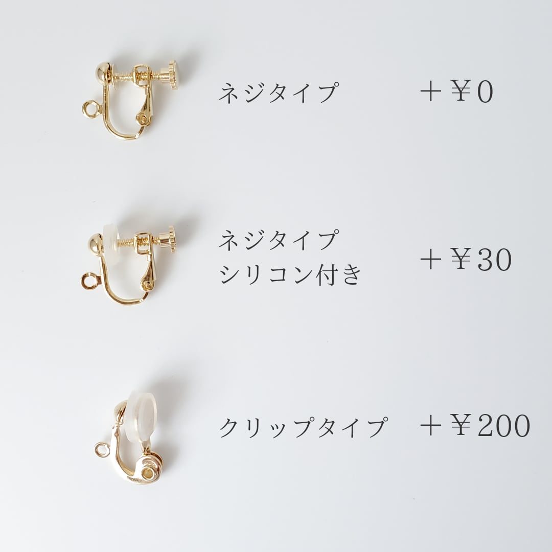 イヤリングはシリコン付きやクリップタイプなどもお選び頂けます